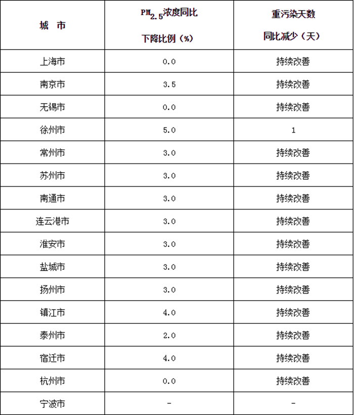 主要目標(biāo):穩(wěn)中求進(jìn),推進(jìn)環(huán)境空氣質(zhì)量持續(xù)改善,長三角地區(qū)全面完成2019年環(huán)境空氣質(zhì)量改善目標(biāo),協(xié)同控制溫室氣體排放。秋冬季期間(2019年10月1日-2020年3月31日),PM2.5平均濃度同比下降2%,重度及以上污染天數(shù)同比減少2%(詳見附件1)。