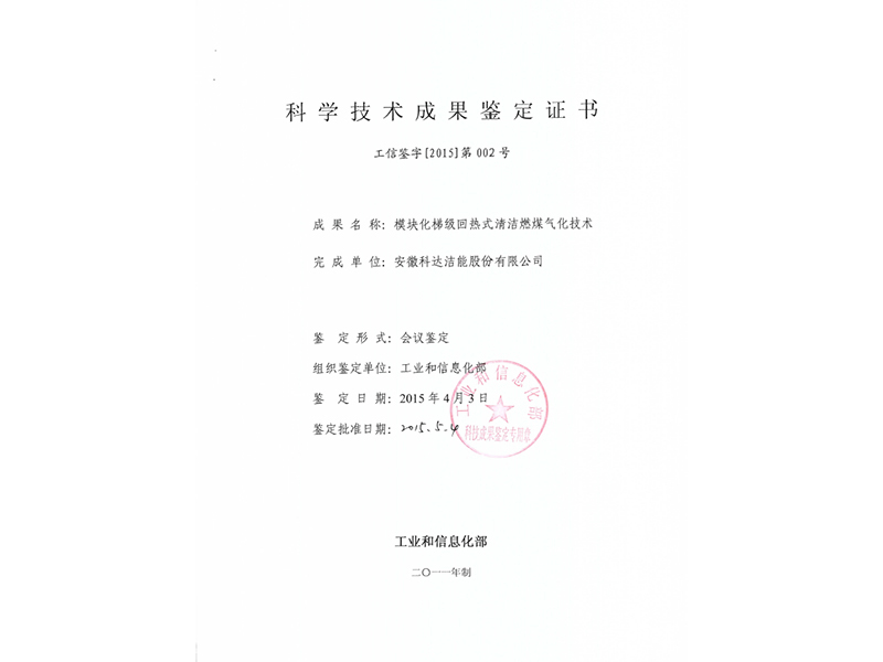 模塊化梯級(jí)回?zé)崆鍧嵢济簹饣到y(tǒng)鑒定證書